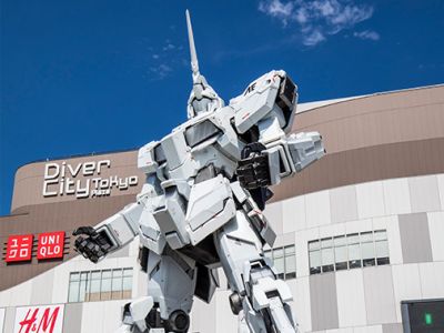 在大型購物中心可以購物和用餐,戶外廣場上等比例大小的獨角獸鋼彈立像是著名的地標。